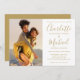 Apresentando seus nomes especiais de fotos e estilo de assinatura, este elegante convite para casamento em ouro e branco pode ser personalizado com suas informações em letras de ouro em chic. Projetado por Thisnotme©