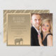 Simples, elegante, luxo, moderno convite para o casamento em ouro metálico, com foto e elefante único, símbolo de amor, poder, sorte e unidade infindáveis.