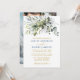 O Cartão de Convite para Casamento Azul Dusty, de Cor Biológica Elegante Moderna, inclui folhas de eucalipto, folhagem botânica verde, folhas azuis empoeiradas e outros belos lençóis botânicos. Azul Dusty e Script Dourado. Foto de volta.