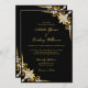Chic Black e Dourado convite de casamento com cantos de joias de diamante. Elegante, juntamente com a formulação do convite para casamento das suas famílias. Criado por © Casamentos Lesruba.