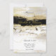 Um convite de casamento elegante com uma aquarela pintada de fundo preto e de ouro como um mármore.