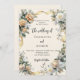 Um bege macio, fundo colorido creme. Decorados com os florais brancos e amarelos e uma fita de ouro. Personalize e adicione seus nomes e detalhes.