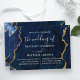 Convite para Casamento de Geodo Marble Agate Azul e Dourado Elegante Moderno. Script de caligrafia de tendências.