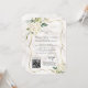 Design de cartão QR moderno com cor d'água, flores brancas delicadas e folhas verdes, uma falso estrutura dourada, sobre fundo de mármore branco. Nas flores brancas traseiras, iniciais. Use a ferramenta Personalizar para adicionar suas informações, alterar fontes, cores da fonte. Para itens correspondentes, visite a Coleção de Casamentos de Código QR.