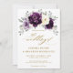 O Elegante convite para o casamento floral no meio do verão apresenta um buquê de pessoas com rosas de aquarelas em tons de ameixa roxa, floral de marfim de champanhe e sábio, folhas verdes e peludas de eucalipto botânico. Por favor, encontre mais designs e variações na minha loja de "blisswedingpaperie". E fique à vontade para me contactar para mais personalizações ou itens correspondentes.