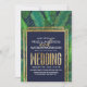 Bandas de praia tropical elegantes, quentes e modernas imprimem bordas triplas de ouro e folhas de palmeiras verdes em frente e bananeiras em azul marinho com falso impresso folha de folha de ouro verão, Convites para Casamento. Este design clássico e sofisticado é perfeito para o casal de competição de tendências e na moda. Personalize com sua própria mensagem na frente, assim como um monograma personalizado na parte de trás. Todas as impressão design.