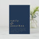 Marinho Casamento Simples Contemporâneo de Texto. Simples e. Informal, seus primeiros nomes são grandes em na moda em minúsculas, com os detalhes embaixo. Personalize facilmente o texto.