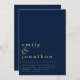 Convites Casamento Dourado de Marinho de Texto Simples Cont