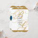 Este design apresenta uma elegante mas simples disposição das iniciais personalizadas da noiva e do noivo na escrita dourada. Os sotaques azuis elogiam o ouro criando um belo design de monograma personalizado. Essa design azul e dourada é moderna, mas mantém seu encanto clássico com o uso de roteiro de caligrafia. A combinação de cores cria um estilo sofisticado, moderno e chic. Design de convite de casamento para monograma elegante com elementos modernos. A configuração simples da tipografia lhe dá um estilo distinto. Também estão disponíveis itens de papelaria de casamento e outros formatos de convite de casamento. Para reposicionar as iniciais, clique em "personalizar este modelo" e clique na opção inferior "Deseja personalizar este design ainda mais? Editar usando a ferramenta Design"