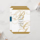 Este design apresenta uma elegante mas simples disposição das iniciais personalizadas da noiva e do noivo na escrita dourada. Os sotaques azuis elogiam o ouro criando um belo design de monograma personalizado. Essa design azul e dourada é moderna, mas mantém seu encanto clássico com o uso de roteiro de caligrafia. A combinação de cores cria um estilo sofisticado, moderno e chic. Design de convite de casamento para monograma elegante com elementos modernos. A configuração simples da tipografia lhe dá um estilo distinto. Também estão disponíveis itens de papelaria de casamento e outros formatos de convite de casamento. Para reposicionar as iniciais, clique em "personalizar este modelo" e clique na opção inferior "Deseja personalizar este design ainda mais? Editar usando a ferramenta Design"