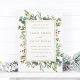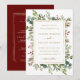 Este convite para o casamento de Natal apresenta a cor d'água de bagas vermelhas, ramos de pínus, eucalipto, folhas verdes e uma falsa estrutura retangular de ouro. Salve o papel incluindo os detalhes e o RSVP na parte de trás do convite para o casamento. Para personalização mais avançada deste design, clique no link "Personalizar mais"!