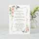 Design de cartão elegante, moderno, com flores rosadas e folhas verdes, cor-de-água, cor-de-rosa, uma falso estrutura dourada, divisor floral, sobre fundo branco. Na parte de trás, as flores e as iniciais são cortadas. Use a ferramenta Personalizar para adicionar suas informações, alterar fontes, cores da fonte. Para obter itens correspondentes, visite minha Coleção de Flores de Creme Esmagador.
