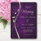 Este belo convite de casamento em tons de ouro e roxo dará um sentido de elegância para o seu casamento! A frente esquerda tem uma rodosa de ouro adornada com algumas folhas. Seu texto de casamento é dourado à direita da imagem. Tudo é colocado sobre um impressionante fundo de gradiente roxo que parece quase brilhar. A parte de trás do convite tem o mesmo plano de gradação roxo. Elegante para qualquer estação! Há placas RSVP correspondentes em nossa loja.