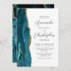 Convites Casamento Dourado de Script Azul de Agate Teal