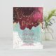 Moderna, elegante, e chic marsala vermelha e lavada a cor d'água da arte teal com malhas estampadas de ouro, convites para casamento. Este design clássico e sofisticado é perfeito para o casal de competição de tendências e na moda. Personalize com sua própria mensagem na frente, assim como um monograma personalizado inicial no verso. Todas as impressão de fotos.