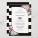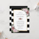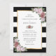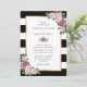 Convide seus hóspedes para sua festa de casamento escura e preta com estes elegantes convites para casamento floral com flores roxas e verde roxas contra um fundo listrado preto e branco. Itens correspondentes disponíveis.