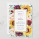 Estes convites para o casamento apresentam um design floral de aquarela com girassóis, flores de borboleta e folhagem com uma falso estrutura de ouro. A parte de trás é uma cor burguenta com um girassol e um motif floral bornu combinando. Personalize estes convites com o seu texto. Os itens de suíte de casamento correspondentes também estão disponíveis. Por favor, visite nossa loja.