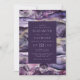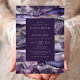 Um design elegante e abstrato em tons de púrpura e de tinta a álcool dourada fornece o fundo para o texto lilás em um retângulo roxo. O design de tinta é repetido na parte traseira da placa.