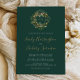 Esta design de casamento apresenta as iniciais da noiva e do monograma em letras douradas, moldadas por uma camada aquosa de verde-oliva num fundo verde esmeralda. Personalize o texto com os nomes dos casais em um guião elegante de cor dourada e os detalhes do casamento em branco. O reverso é verde esmeralda sólido. Ideal para um casamento temático russo em Tuscan.