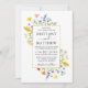 O Convite para Casamento de Flores Selvagens Modernas inclui as delicadas flores amarelas, cor-de-rosa, cor de pêssego, azuis empoeirado, verdes, roxas, vermelhas e laranja, papoilas, folhas de eucalipto e outras lindas culturas botânicas numa armação de ouro. Script Elegante De Caligrafia. Fotografia do casal de volta.