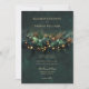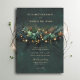 Ilustração de flores, galhos e folhagem silvestres em um arranjo botânico de coroa com sotaques dourados e luzes de fada (são efeitos digitais!), sobre um fundo verde-esmeralda brilhante, decora esta queda primavera e convite ao casamento no inverno de verão com um tema de casamento florestal encantado. Um convite elegante e moderno para um casamento de conto de fadas, é o convite perfeito para noivas que amam o cenário da floresta de conto de fadas, o tema da floresta de fadas ou do jardim de fadas e o verde esmeralda com sotaques de ouro. A tipografia de casamento moderna e simples é aspergida com sotaques clássicos de caligrafia de casamento por um toque elegante.