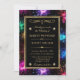 Design de fogos de artifício Elegante do arco-íris púrpura, azul, rosa, vermelha e laranja com estrutura dourada e clipart de diamantes