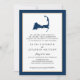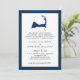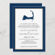 Este Anúncio de Casamento Simples e Moderno apresenta um mapa azul de Cabo Cod marinho com um coração de ouro de champanhe sobre o oeste de Dennis, Massachusetts. Para obter informações sobre alterações de design personalizadas pelo designer independente, envie um email para paula@labellarue.com ANTES de personalizar ou fazer um pedido.