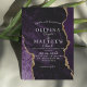 Na moda de casamento escuro moderno. Púrpura com poeira de ouro ativada com efeito de derrame de tinta dourada (o ouro é um efeito digital, não uma folha real!) e caligrafia moderna. Clássico e elegante, simples e moderno convite. Dourada tinta para derramar efeito (o ouro é um efeito digital, não uma folha real!) e caligrafia moderna.