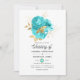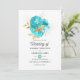 Aqua e o convite de casamento floral de ouro de folha falsa com sotaques de chá personalizáveis para seus detalhes de evento.