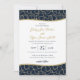 Convite para casamento azul e ouro de marinho elegante com cor de fundo e texto editável.