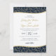 Convite para casamento azul e ouro de marinho elegante com cor de fundo e texto editável.