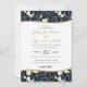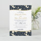Convite para casamento azul e ouro de marinho elegante com cor de fundo e texto editável.