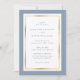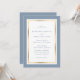 Elegante personalizado convite para casamento de azul empoeirado e ouro. Personalizar facilmente online. Itens correspondentes disponíveis para complementar estes convites de casamento modernos, azuis e dourados. Para pedidos personalizados, envie-nos uma mensagem através do bate-papo Zazzle.