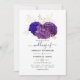Convite de casamento floral azul e roxo com sotaques de ouro personalizáveis para seus detalhes do evento.