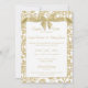 Dourado damask e design de arco impressos sobre o convite de casamento branco com todas as informações importantes, incluindo detalhes de recepção, no convite principal. Vintage inspirou que o damasco de ouro é eterno, mas tenente, formal e romântico.
