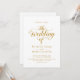 Este elegante convite de casamento branco e ouro é perfeito para um casamento moderno. O simples design apresenta uma elegante caligrafia dourada sobre um fundo branco limpo. O cartão de convite inclui os detalhes do casamento no verso, em vez de pagar um cartão separado.