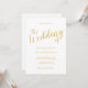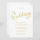 Suite de Convite para Casamento Branca e Dourado de Script Moderno: Convite para Casamento com título em fonte de script moderno dourado com detalhes de casamento em fonte de sans serif moderna dourada em fundo branco. Nota: Os detalhes da folha são simulados no trabalho de arte. Não será utilizada nenhuma folha de alumínio real no fazer deste produto.
