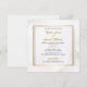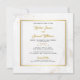 Convite Dourado e Branco Elegante, desenhado com um quadro dourado em fundo branco com sotaques dourados confetti. O texto inclui: Nomes da noiva e do noivo, data de casamento, hora, localização e recepção. O inverso é um fundo branco correspondente com sotaque dourado. Para personalizar, basta inserir seus detalhes em nosso modelo fácil, substituindo a amostra. Certifique-se de ver a Coleção de Casamentos Dourados e Brancos completa para cartas e acessórios correspondentes.