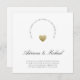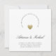 Um design moderno que é simples mas na moda. Um texto introdutório curvo em torno de um coração de ouro solteiro. Adicione apenas seus primeiros nomes a este convite minimalista. A seguir, você adicionará seus detalhes de casamento. Para isso, adicione o dia, a data e a hora seguidas pela localização. Termine com suas informações de recepção. Este design contemporâneo é adequado para casamentos pequenos e maiores. Se tiver perguntas ou precisar de ajuda, entre em contato com o designer que o ajudará.