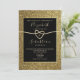 Simples, moderno, elegante, ouro brilhante e convite de casamento preto com corda romântica e roteiro de caligrafia moderno.
