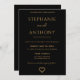 Este Convite para Casamento Dourado e Negro Minimalista dá o tom perfeito para sua elegante celebração. Com um fundo preto elegante com um delicado coração de ouro, esse design moderno e sofisticado cria uma primeira impressão de eterno. Perfeito para casamentos contemporâneos, este convite apresenta lindamente seus detalhes de casamento com uma estética refinada e minimalista. Seja combinado a papelaria correspondente ou em destaque próprio, este design de chic garante aos seus convidados o entusiasmo do seu dia especial a partir do momento em que o receberem.