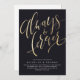 Os convites simples modernos apresentam um roteiro escrito "sempre e sempre" em folha de ouro falsa e cor preta, personalize-o com os detalhes do seu casamento, elegante e na moda, Veja todas as peças correspondentes na coleção.