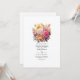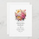 Convite de casamento floral cor-de-rosa e dourado. O código QR no verso direciona para o seu local de casamento onde o pessoas pode aprender mais e rsvp.