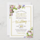 Este elegante convite para o casamento floral apresenta texto dourado sobre fundo branco com uma borda dourada e aglomerados de rosebudas e lírios cor-de-rosa nos cantos. A parte de trás é uma cor rosada que lhe dá uma sensação texturizada. Na moda e sofisticado, as cores pastéis fazem com que esse convite seja perfeito para uma cerimônia de primavera.