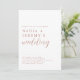 Simples convite de casamento branco e rosa em ouro no estilo da tipografia moderna, chic e elegante. Todo texto é personalizável, personalize com nomes de noiva e noivo, detalhes de casamento/festa e monograma. Perfeito para casamento e festa de noivado.