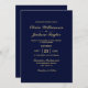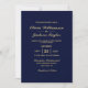 Um marinho elegante azul com convite para casamento de texto dourado.