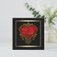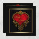 Rich red satin coração com ornamentado de ouro, trim elegante, preto e ouro, convite para casamento.
