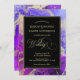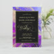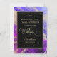 Um convite formal elegante para o casamento. Bela abstrato de arte acentua um modelo facilmente editável ao qual podem ser adicionados os nomes da noiva e do noivo e os detalhes do casamento. Elegante Violet Ametist Roxo Dourado Convite Para Casamento Moody. Veja nossas coleções para designs de arte abstrato mais bonitas e originais da artista internacional Pauline Benjes.