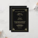 Este é um convite de casamento elegante e elegante para qualquer estação. Um quadro de ouro geométrico decorado em canto encerra o texto do casamento, que também está em ouro. As imagens e o texto são colocados sobre um fundo negro sólido e dramático. O verso do convite também é preto. Simples, distinto e sofisticado!
