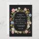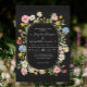 A elegante mão pintada com a cor d'água, borda de flores silvestres com sotaques dourados e borda define o tom de um casamento formal moderno ou você pode facilmente mudar todos os campos de modelo de texto para criar seu próprio evento. O fundo preto desencadeia as margaridas brancas, cor-de-rosa e amarela, as flores azuis, as flores silvestres e a folhagem das folhas, que também são ligeiramente esboçadas com ouro. Design de arte e gráfico por artista e designer internacionalmente licenciado, Audrey Jeanne Roberts, copyright.